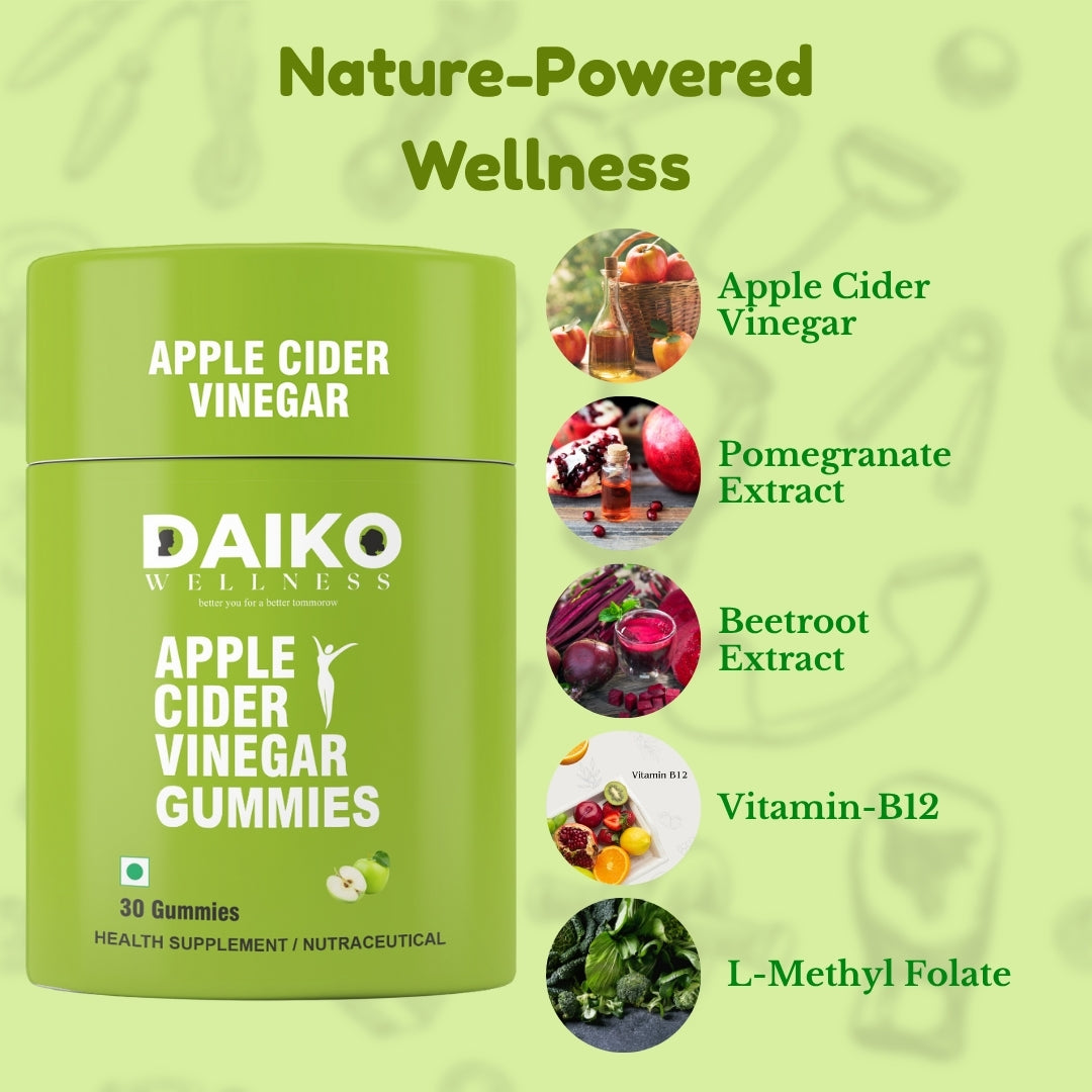 Daiko Wellness Apple Cider Vinegar Gummies are thoughtfully formulated with fermented apple extract, essential vitamins, and plant-based ingredients that complement your daily wellness routine in a convenient and tasty format