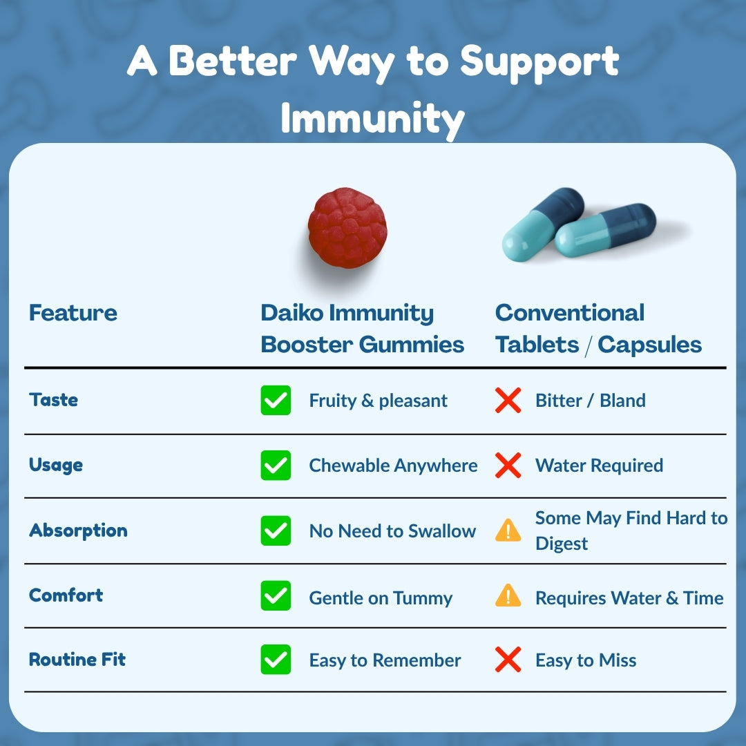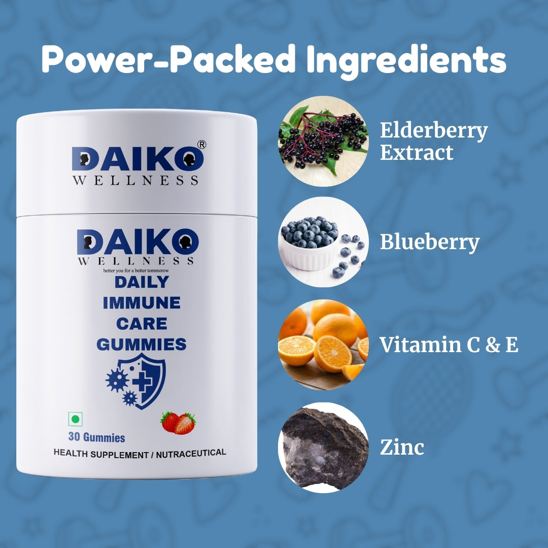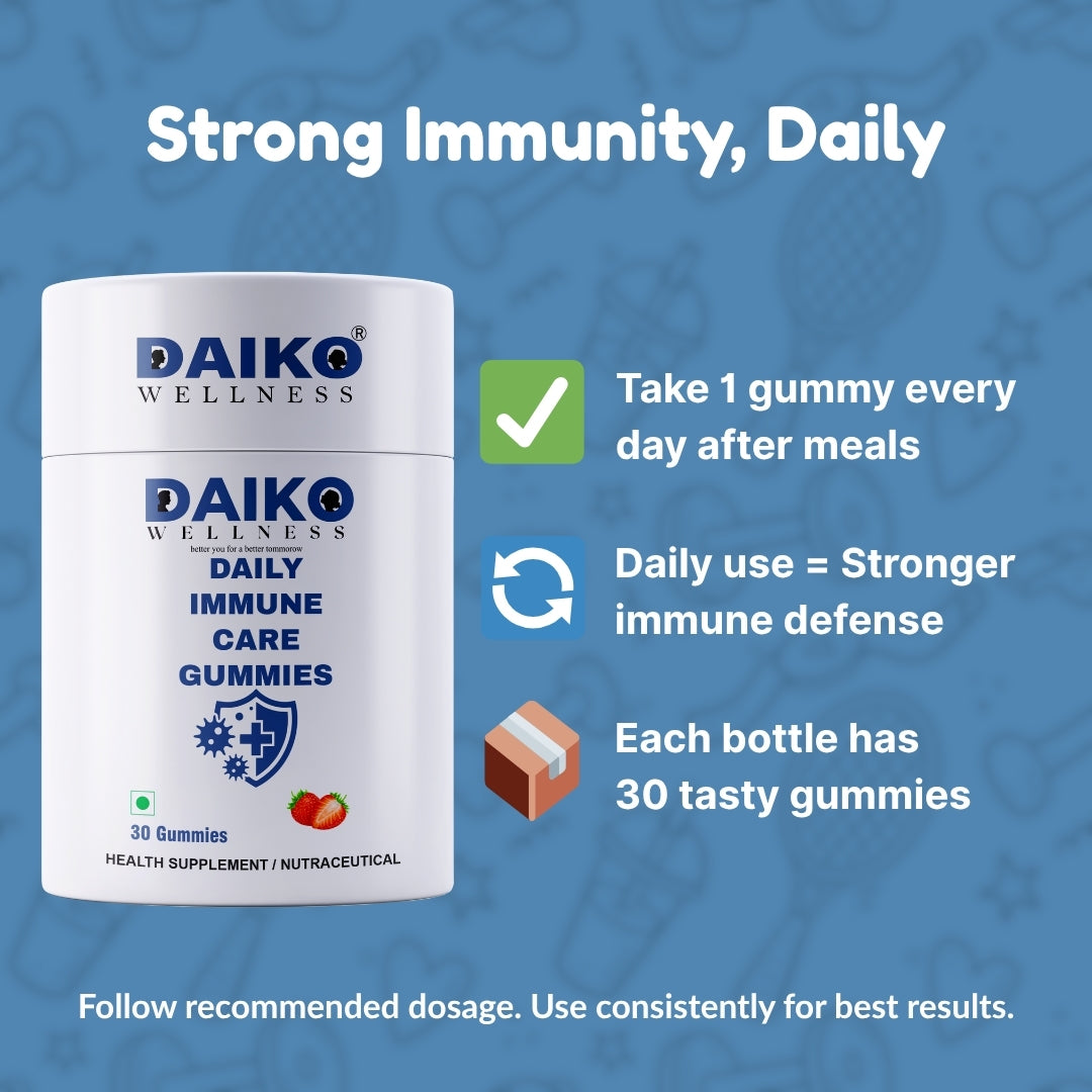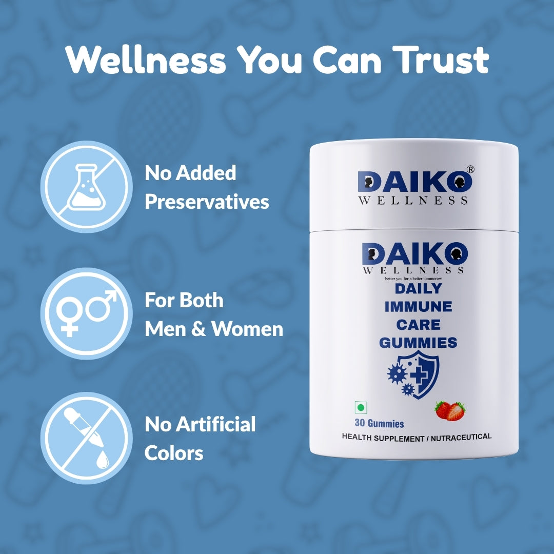 Daiko Wellness Immunity Gummies are thoughtfully crafted with essential vitamins, minerals, and botanical ingredients known to help maintain immune function. Designed for adults seeking to support natural immune defenses and overall wellness as part of a balanced lifestyle, these gummies are a convenient and enjoyable daily choice.